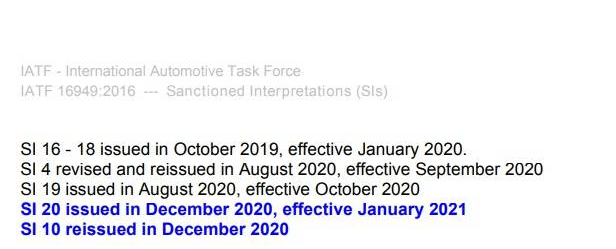 以下認(rèn)可解釋(SI)已由 IATF 確定及批準(zhǔn)。
